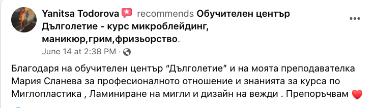 Да се свържете с Мария Сланева на тел. ☎️ 088 98 78 738 и след това да посетите салона на място, за да уговорите подробностите относно обучението, графика на курса, да се запознаете лично, да разгледате базата ни за практическо обучение, да зададете Вашите въпроси.