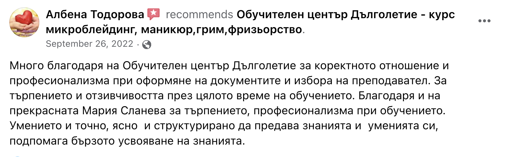 Всяка група е малка, което гарантира, че всеки курсист получава персонализирано внимание от висококвалифициран преподавател, който съобразява обучението с нуждите и възможностите на всеки участник. - Подготовка за работа в салон: